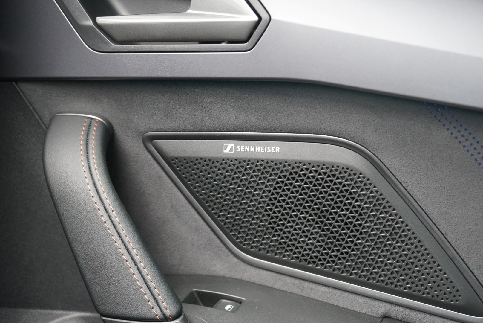 Sitzbezug: Stoff Dinamica / Kunstleder schwarz mit blauen Akzenten